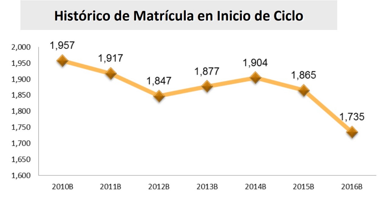Primeramente, se observa una disminución considerable en la matrícula del plantel, de más de 1000 estudiantes, sin embargo, este dato no se considera atribuible a la intervención, puesto que, analizando el comportamiento histórico de la matrícula del plantel ya se venía observando una tendencia a la baja, como lo muestra la siguiente gráfica: